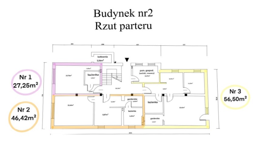 POZIOM 0: Mieszkanie nr 1 o pow. 27,25 mkw, mieszkanie nr 2 o pow. 46,42 mkw, mieszkanie nr 3 o pow. 56,5 mkw, pom. gosp. 10,37 mkw